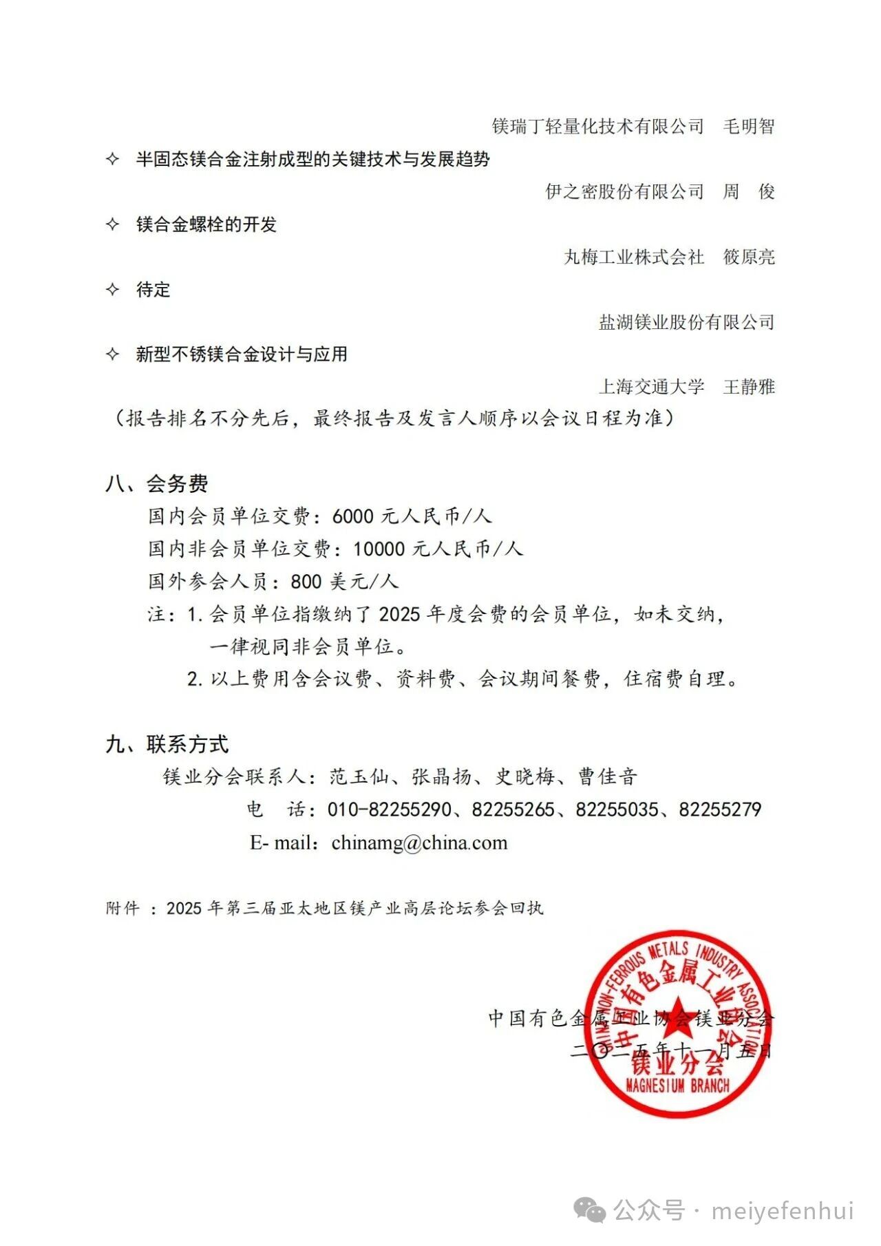 关于举办2025年第三届亚太地区镁产业高层论坛的通知